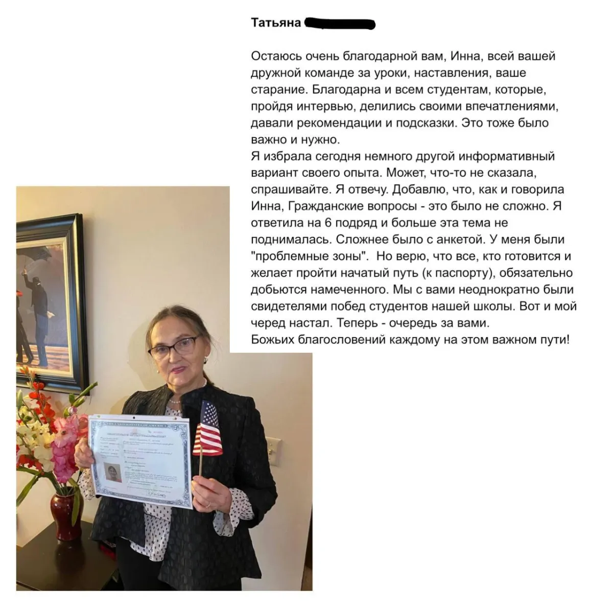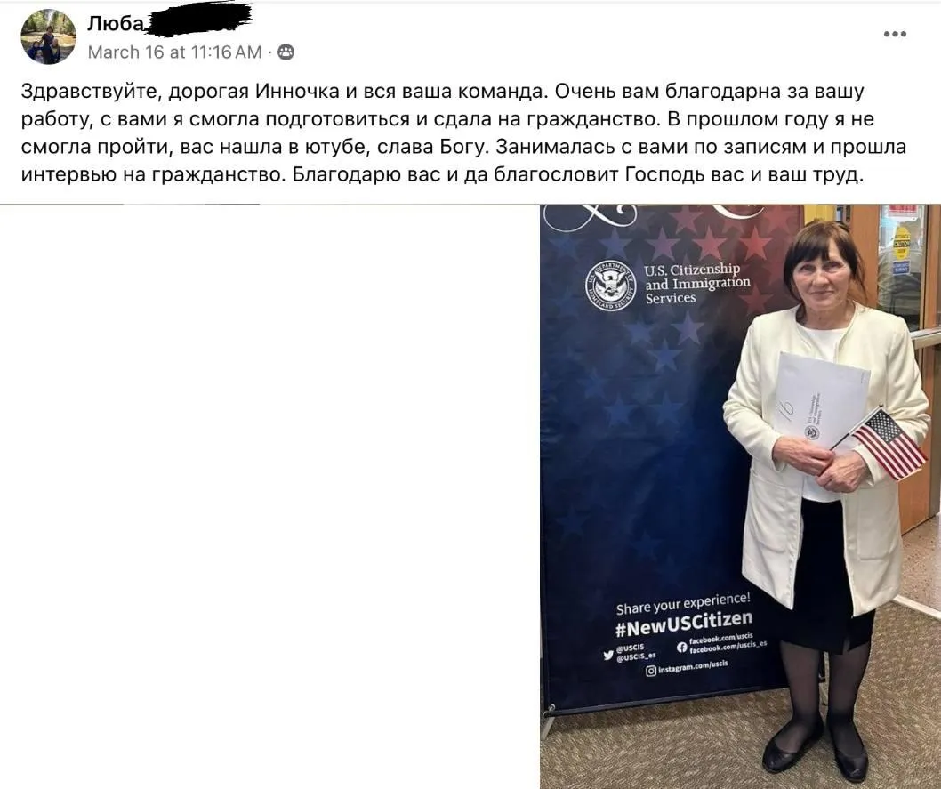 За последние 9 лет, Инна помогла тысячам наших людей стать пройти Интервью на Гражданство и стать Гражданами США!