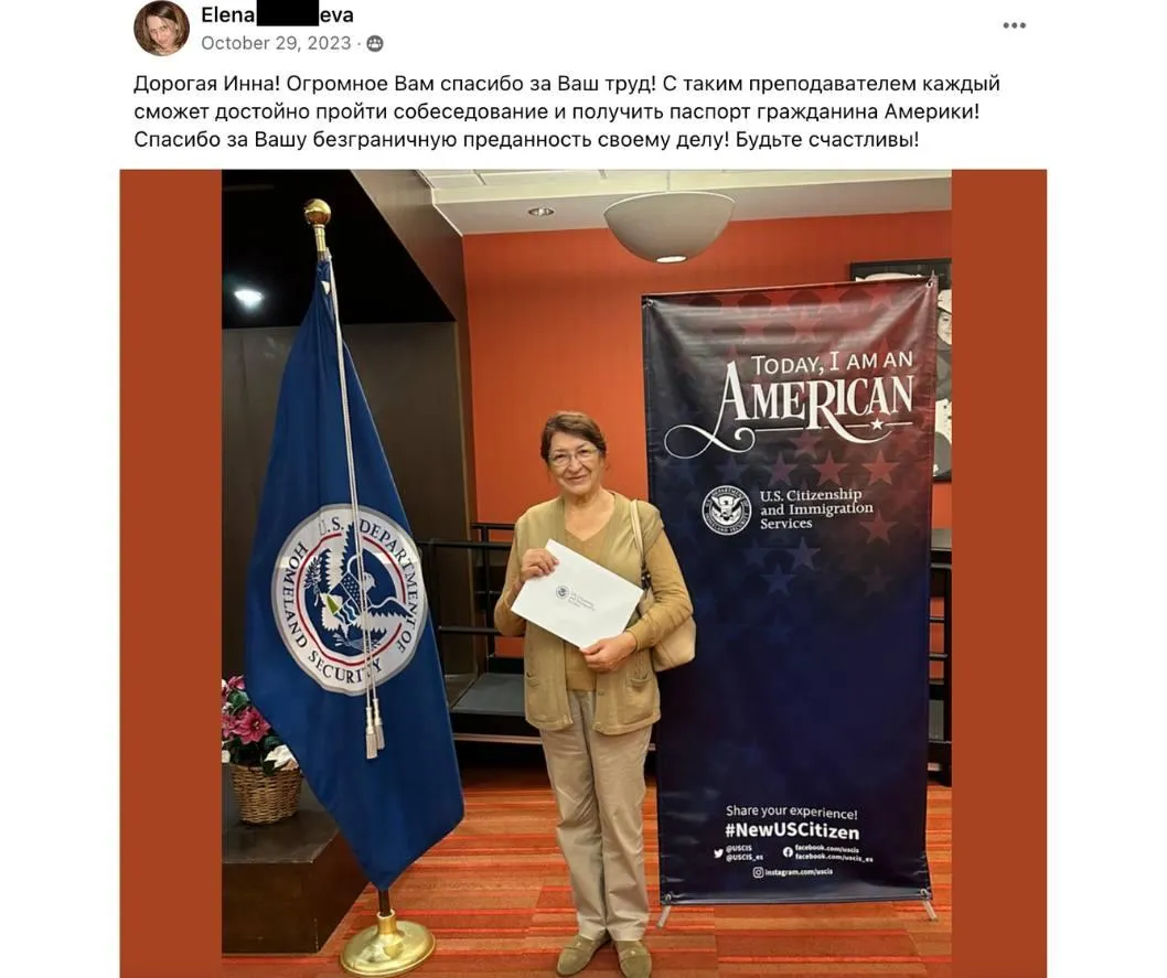 Елена: "С таким преподавателем каждый сможет достойно пройти собеседование и получить паспорт Гражданина Америки"